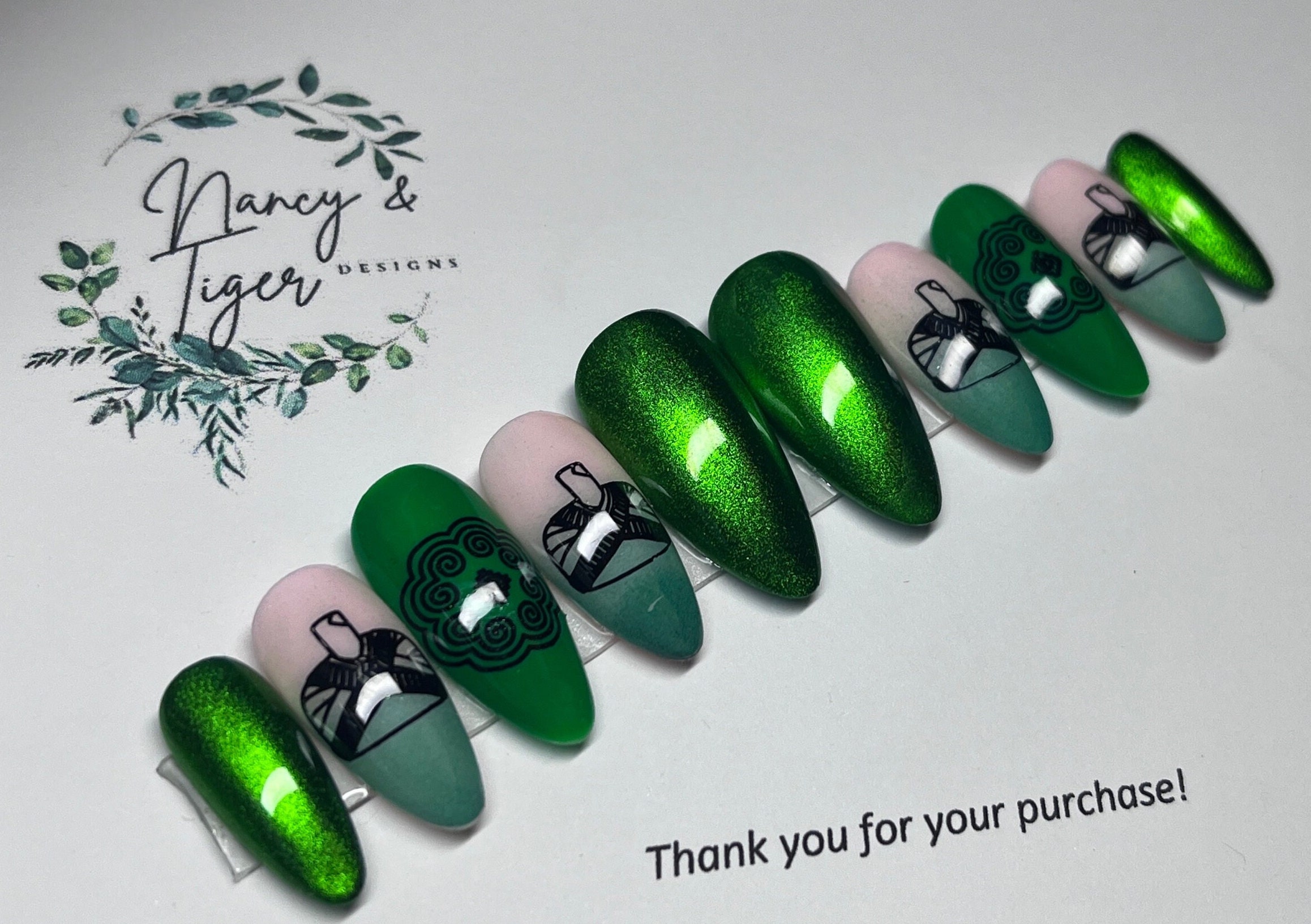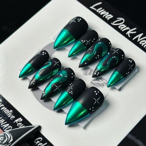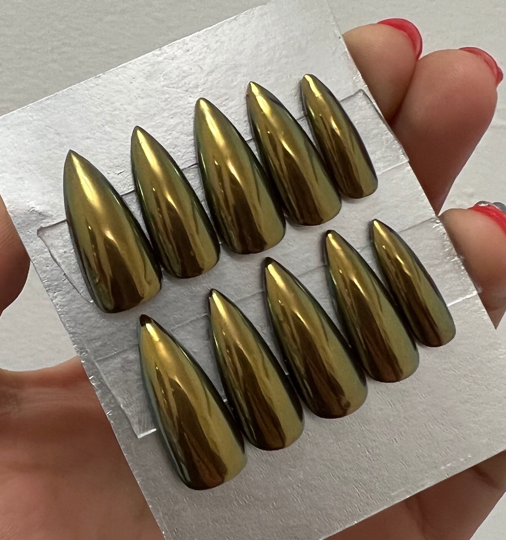 Green Chrome Nails Etsy
